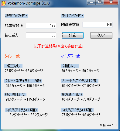 ポケモンダメージ計算ツールpokemonDamage β ver 1.0